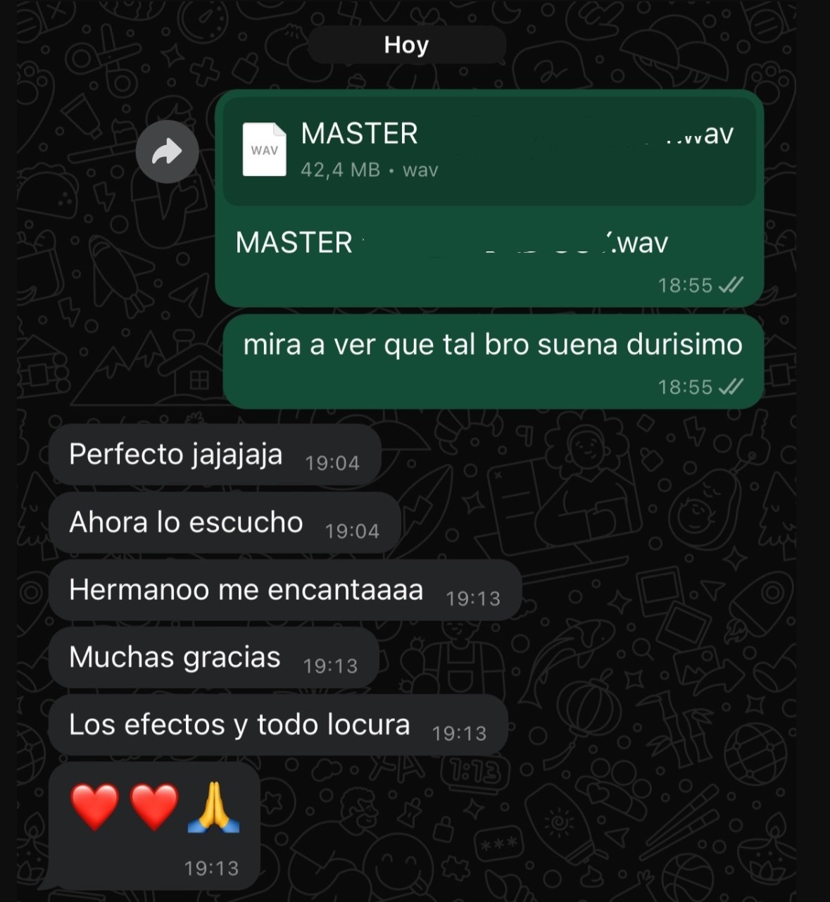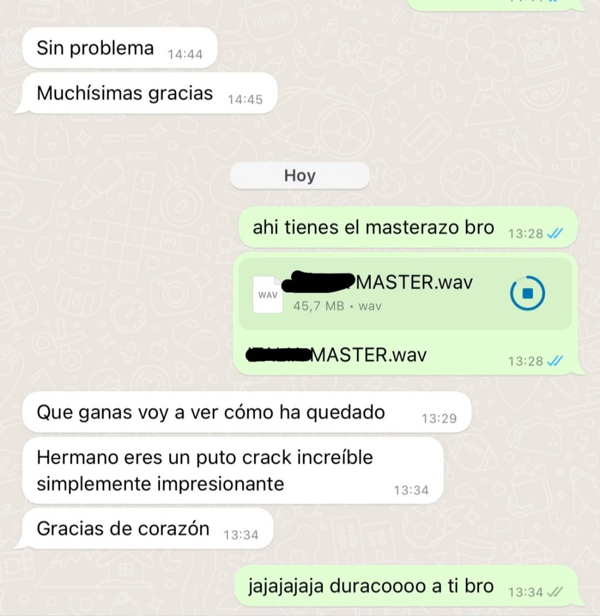Tendrás una experiencia de 10, donde yo mismo te ayudaré a sacar el mejor partido a tu canción y que quede perfecta.